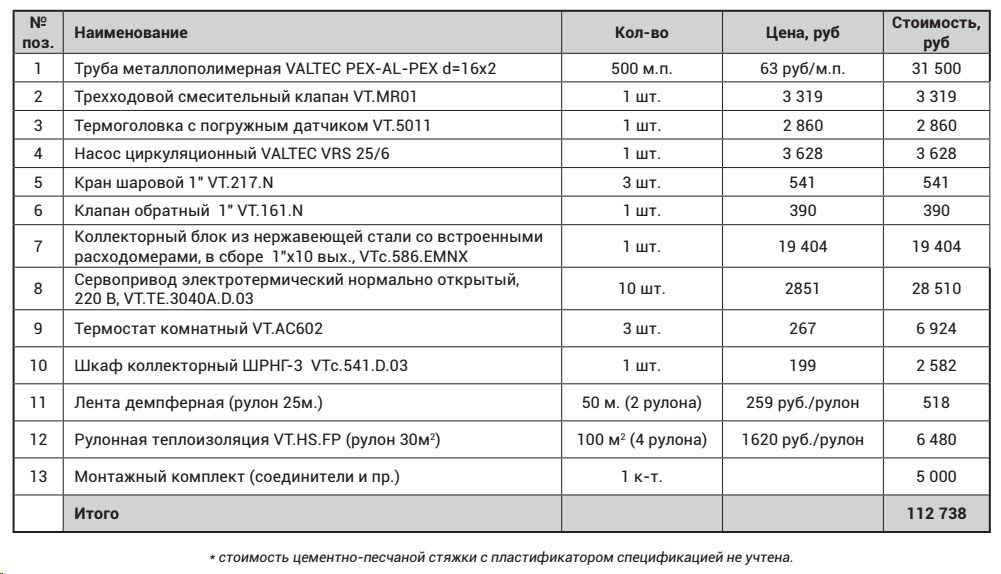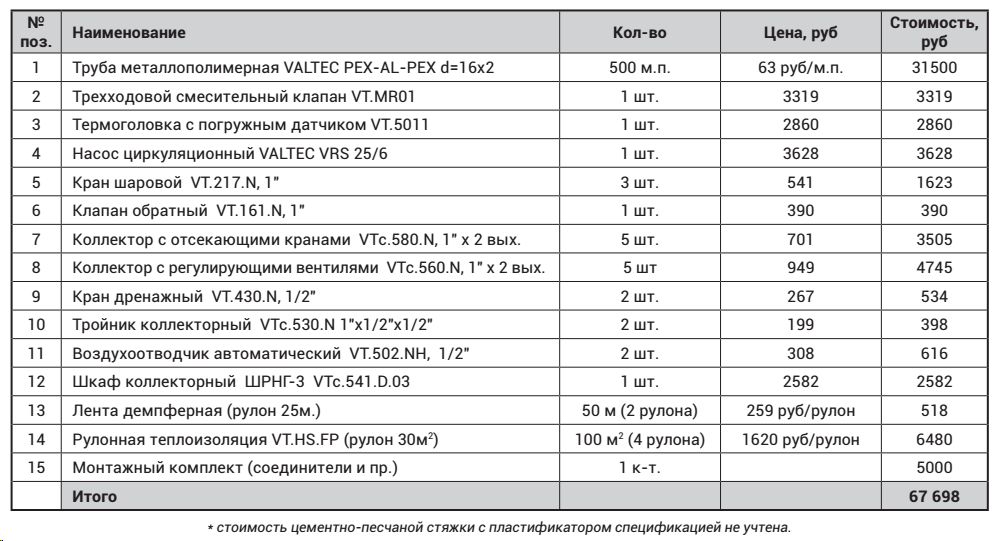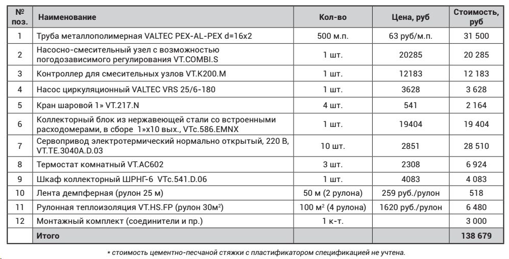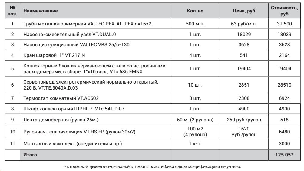 Таблица 4. Спецификация материалов «теплого пола» для схемы № 3 (на 100 м2 пола)