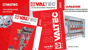 Вашему вниманию предложены: дополненное издание Полного технического каталога продукции VALTEC, сборник «Статьи технических специалистов VALTEC 2017», альбом «Этажные и квартирные коллекторные узлы систем отопления для многоквартирных домов», брошюра «Новинки VALTEC 2017 года», а также актуальный (зима 2017 г.) прайс.