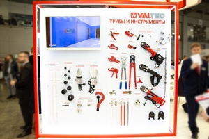 Отдельным стендом в рамках экспозиции VALTEC демонстрировались на выставке трубопроводные системы и монтажный инструмент. Здесь были представлены металлополимерные, полипропиленовые трубы, трубы из сшитого полиэтилена и полиэтилена повышенной термостойкости, трубы из нержавеющей стали, комплекты сварочного оборудования, ножницы и резаки, ручной и электрический пресс-инструмент.