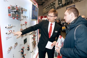 Одна из задач, которую компания поставила перед собой на выставке этого года, – подчеркнуть вариативность своих предложений. Один и тот же узел – например, ввод водопровода в квартиру или обвязка радиатора – может быть укомплектован элементами, отличающимися друг от друга по набору функций, характеристикам и цене. Это позволяет предложить заказчику оптимальную для него комплектацию.
