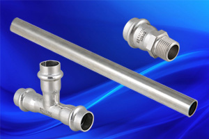 Система VT.INOX-PRESS включает в себя выполненные из нержавеющей стали трубы и бесштуцерные пресс-фитинги, обжатие которых производится инструментом с насадками типа V. Каждое соединение дополнительно герметизировано уплотнительным кольцом из эластомера EPDM.