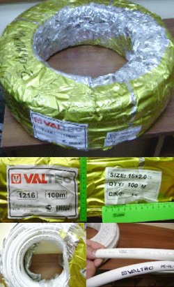 1. Бухты трубы исполнены по китайскому варианту (высота и диаметр) и значительно отличаются от оригиналов. Упаковка трубы нехарактерна для данного вида продукции и представляет собой фольгу на основе полиэтилена золотистого цвета. Размещенные на упаковке этикетки с данными о трубе отличаются от оригинала по шрифту, размеру и содержанию.