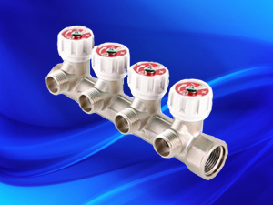 Теперь в наличии есть коллектор с 4 выходами. Использование данных коллекторов позволяет выровнять предельные расходы по потребителям (водоразборным приборам), сводя до минимума их взаимное влияние друг на друга. Конструкция изделия обеспечивает подачу воды «под золотник» регулирующих вентилей при движении потока из коллектора к потребителю, что гарантирует качественное пропорциональное регулирование, не приводящее к появлению шумов в трубопроводной системе.