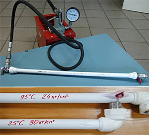 В критических ситуациях труба VALTEC PP-FIBER 20 способна кратковременно выдерживать и гораздо большее давление. Это подтверждают тесты, проведенные в лаборатории комплексных испытаний элементов инженерных систем VALTEC: при температуре рабочей жидкости 95 °С разрушение трубного образца произошло лишь при достижении 24, а при 25 °С – 90 бар.