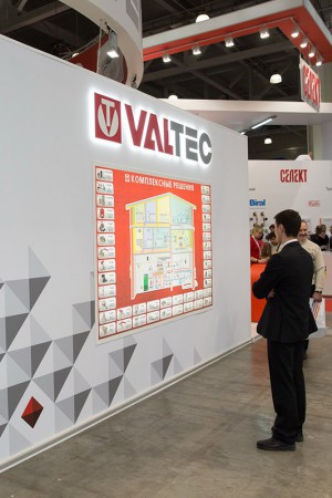 VALTEС является постоянным и одним из наиболее активных участников московских выставок Aqua-Therm на протяжении всей своей истории. В этом году бренд выступил в роли спонсора мероприятия. Рекламные баннеры торговой марки встречали гостей в пешеходной галерее от метро, на парковке, в холлах «Крокус Экспо» (забегая вперед, скажем, что по итогам выставки VALTEC отмечен дипломом за оптимальное использование рекламных возможностей). Слоган «Ищете надежного партнера – приходите к нам!» не требовал разъяснений: в непростых условиях 2015 года удержаться «на плаву» можно лишь в сотрудничестве с по-настоящему сильной компанией, уверенной в своих ресурсах и действиях.