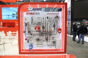 Так, на стенде «VALTEC для котельной», кроме соответствующего профильного оборудования обвязки котла автономного отопления индивидуального дома (термогидравлического разделителя, запорной, регулирующей арматуры, автоматики и т.д.) были показаны варианты применения в соответствующих контурах трубопроводных систем VALTEC – из нержавеющей стали, полипропилена, металлопластика. Таким образом, наглядно, в составе смонтированных узлов котельной обвязки продемонстрирован ассортимент труб и фитингов нашей фирмы.