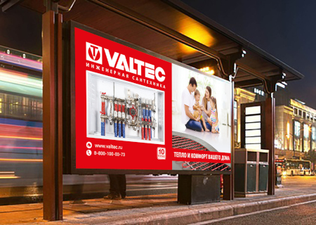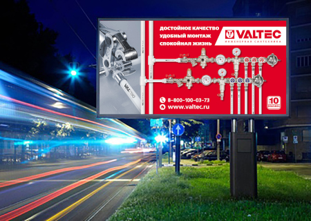 Эффективность наружной рекламы определяется правильностью выбора места ее размещения, вида носителя, дизайном и содержанием. Средства наружной рекламы VALTEC созданы профессионалами с учетом восприятия городской аудитории, перегруженной информацией. Партнерам обеспечивается дизайнерская поддержка и помощь в планировании рекламной кампании.