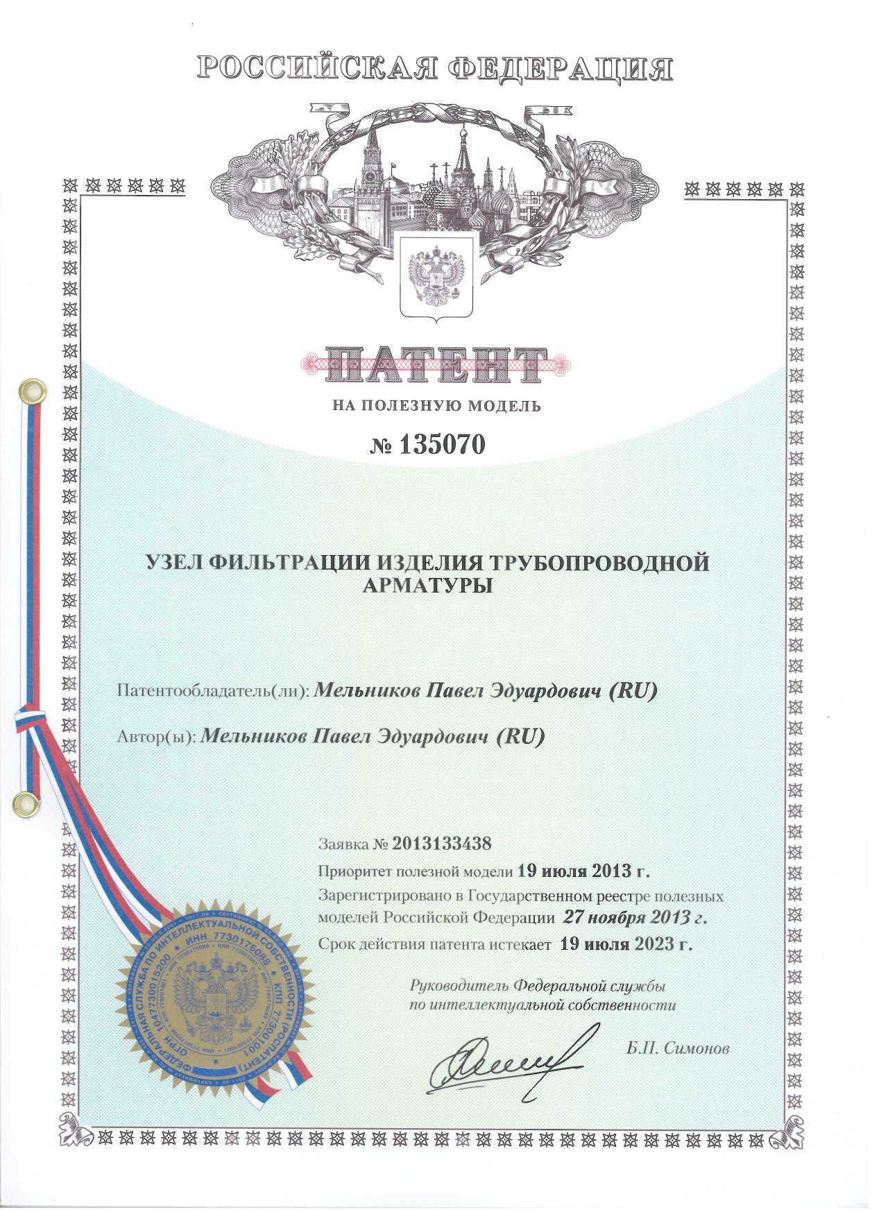 Патент № 135070. Автор: Мельников Павел Эдуардович