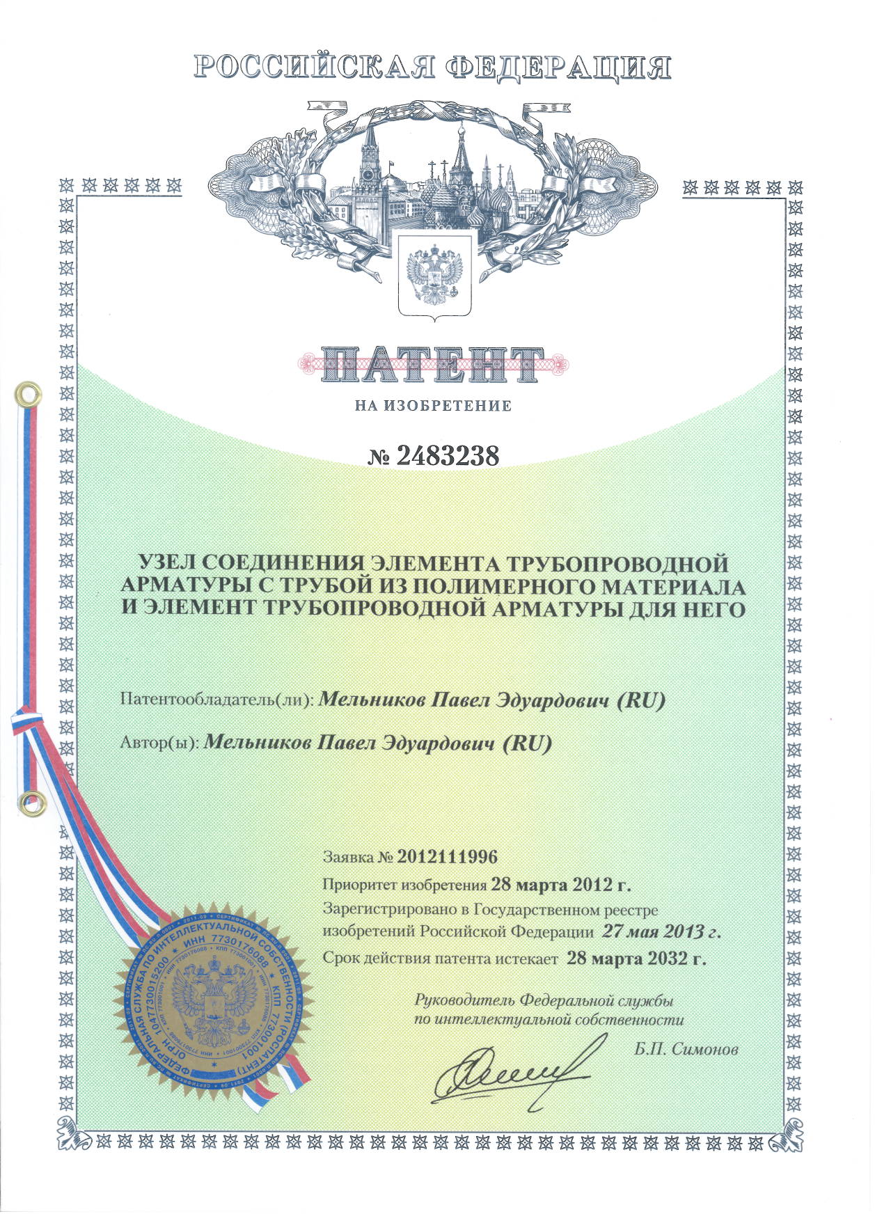 Патент № 2483238. Автор: Мельников Павел Эдуардович.