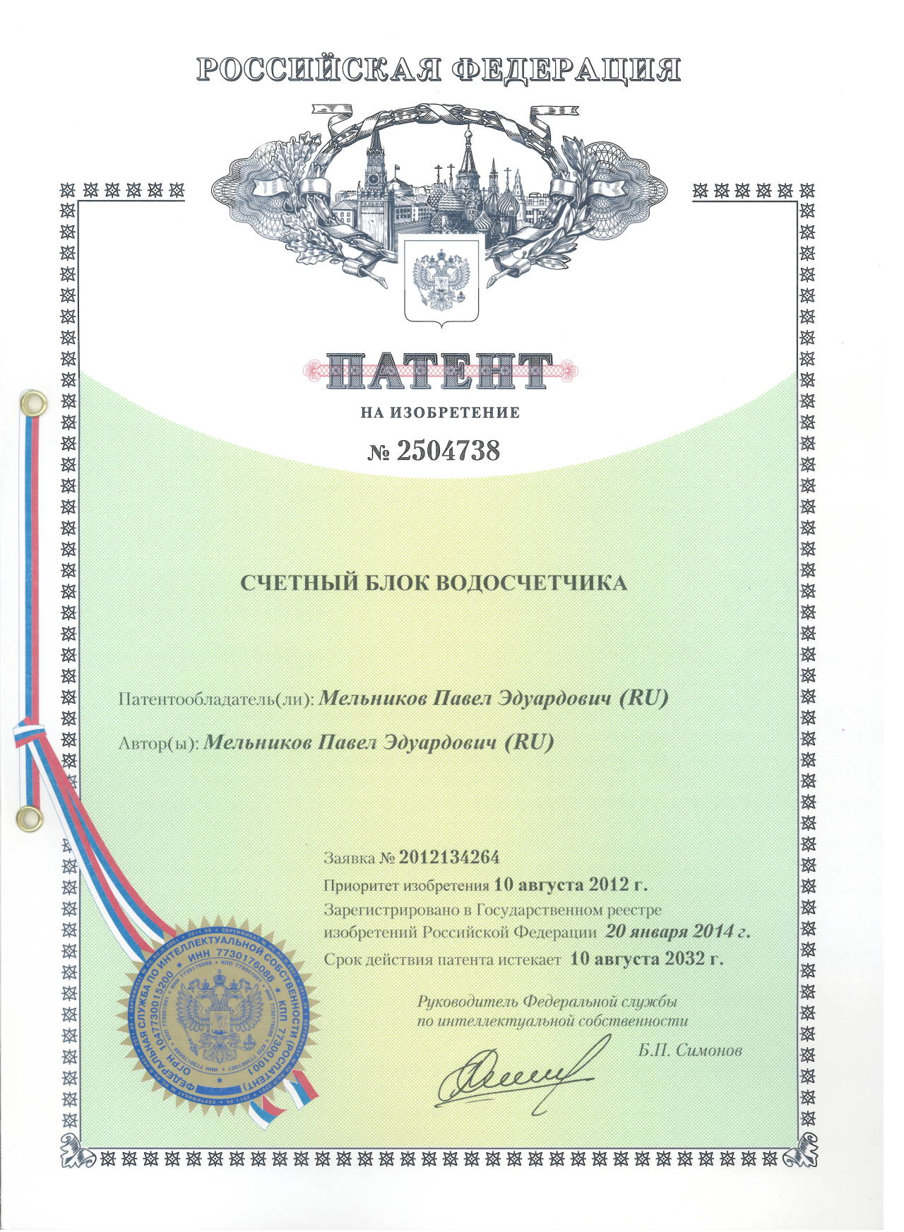 Патент № 2504738. Автор: Мельников Павел Эдуардович.